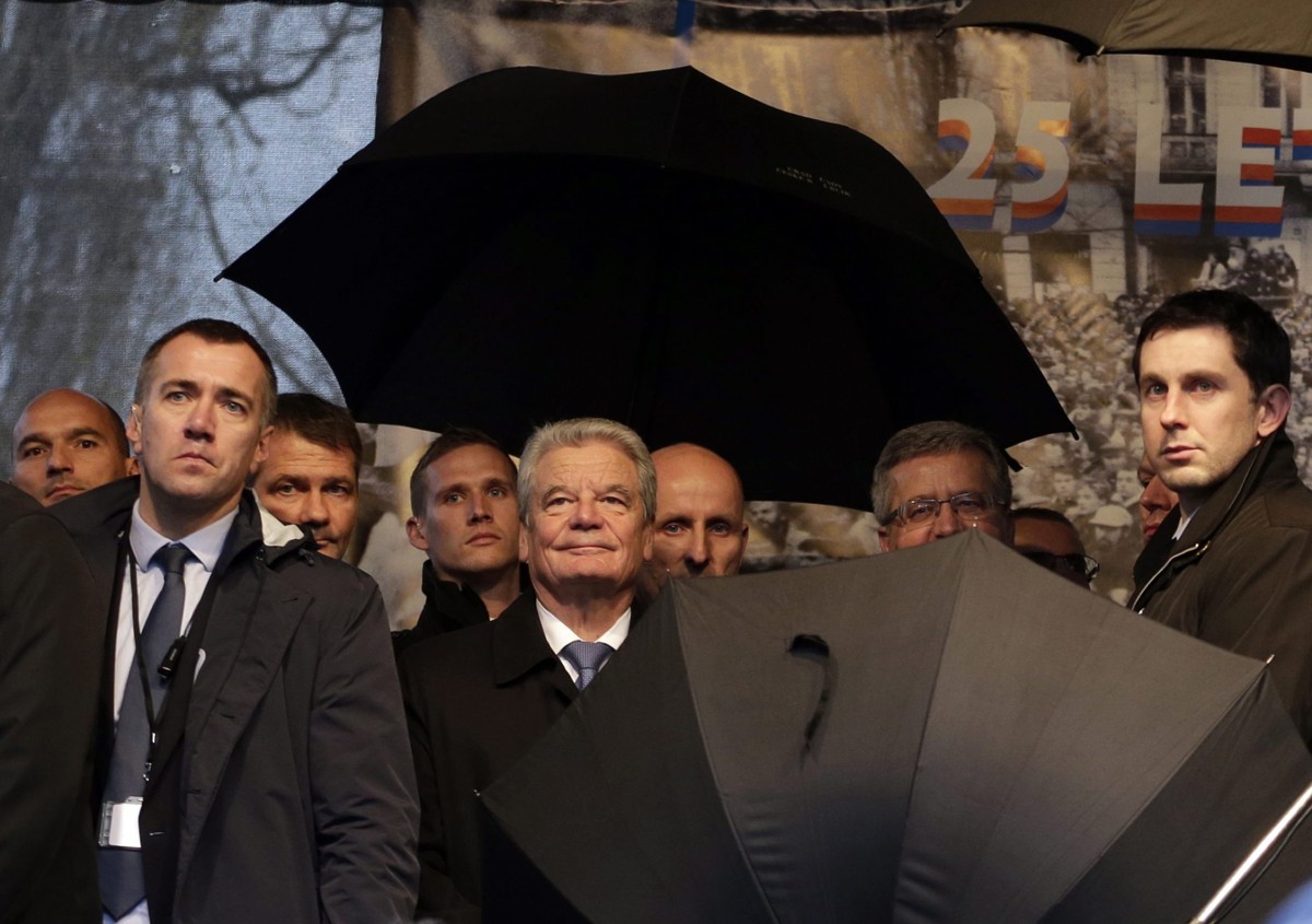 O chvíli později Češi tleskali projevu prezidenta Bronisława Komorowského. „Svoboda je jedna. Je to zásluha těch, kteří chtějí jít stejnou cestou svobody jako Západ. Ukrajina, Moldavsko a Gruzie si to zaslouží,“ řekl Komorowski. Několik stovek lidí ocenilo polského prezidenta bouřlivým potleskem, když oznámil položení květin u hrobu bývalého prezidenta Václava Havla. Postavení se dočkali i prezidenti Slovenska, Maďarska a Německa. ovace.