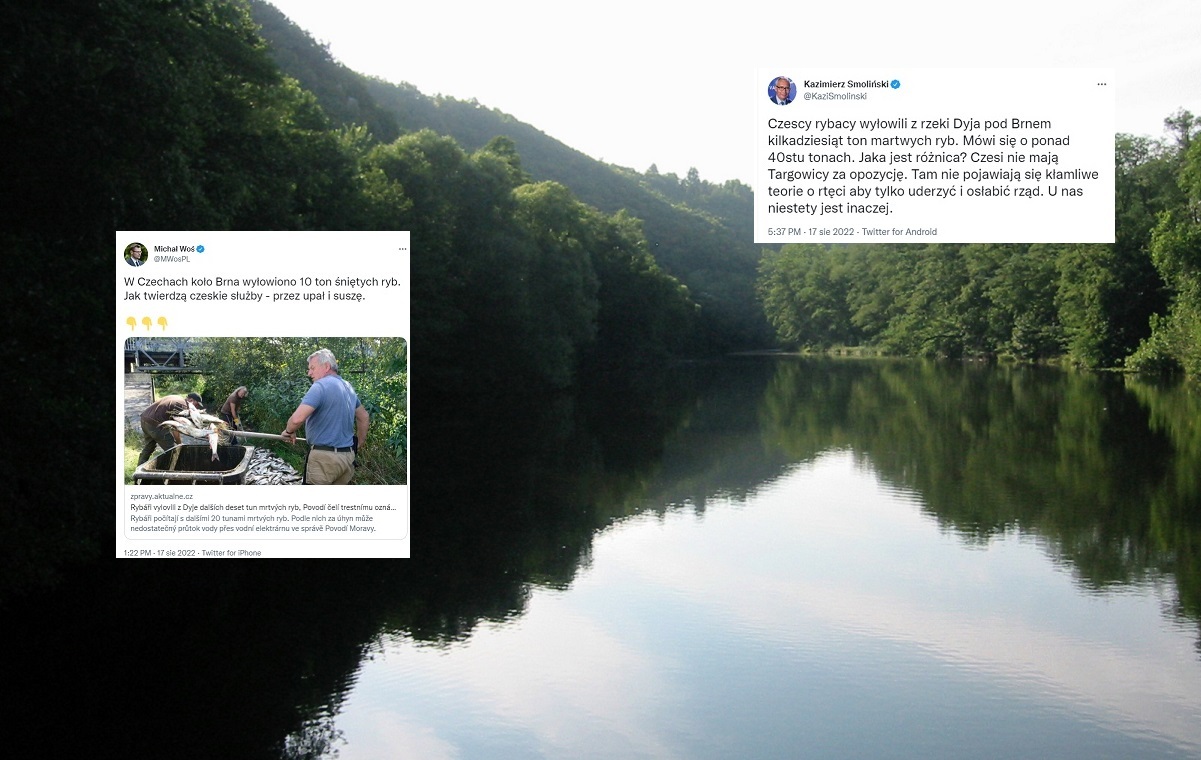 Na konci července u Brna v České republice vylovili rybáři v řece Dyji mrtvé ryby. Celkem měl mor zasáhnout několik desítek tun ryb a jako příčiny české služby uváděly horko a sucho. O mrtvých rybách v Česku vzpomínali na Twitteru mimo jiné náměstek ministra spravedlnosti Michał Woś a poslanec PiS Kazimierz Smoliński. „Češi nemají Targowicu za soupeře. Neobjevují se tam falešné rtuťové teorie, které by zasáhly a oslabily vládu,“ napsal Smoliński.