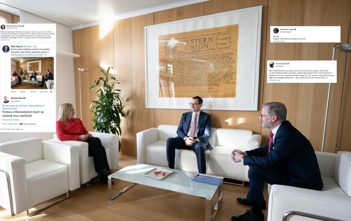 Reakce uživatele českého internetu na fotku, kterou před summitem zveřejnil premiér Fiala. Předsedové vlád Polska, České republiky a Itálie (všichni z ECR) přednesli svůj postoj před Evropskou radou. (Dříve jsem omylem podepsal maďarský. Meloni sídlí v Římě, ne v Budapešti)